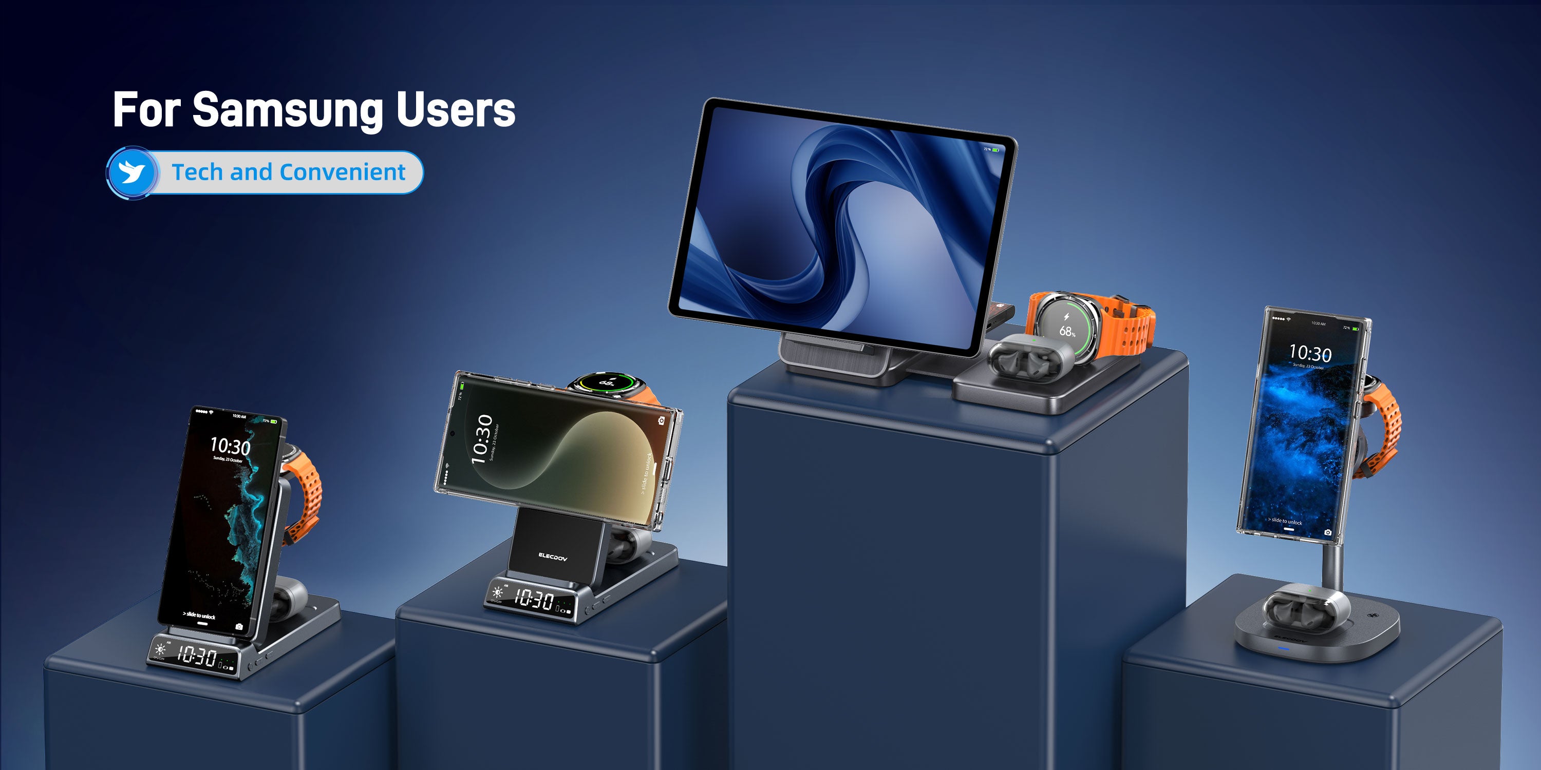 Elecdov 3 in 1 Magnetic Clock Wireless Charger for Samsung
